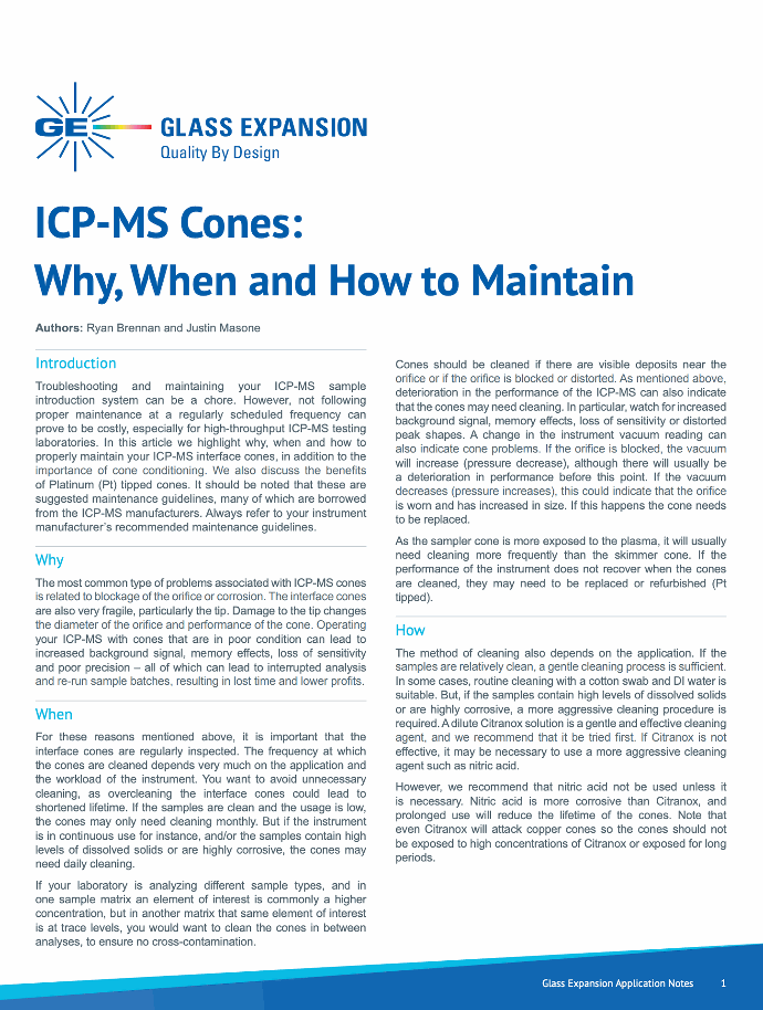 Contact us at enquiries@geicp.com to check the availability of cones for your ICP-MS model.